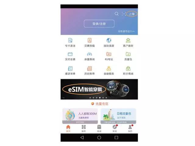 2. 打开 联通手机营业厅 app,在 首页 右上角将地区设为上海。注:上市初期仅支持开通归属地为上海的号码,其他省市陆续开通中。