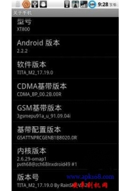 2012.10.19更新XT800_2.2.2超爽刷机包 稳定全局透明 基于原版2.2.2上优化;更新壁纸选择器内壁纸,多元化选择 精简了无用的文件和内置软件;...
